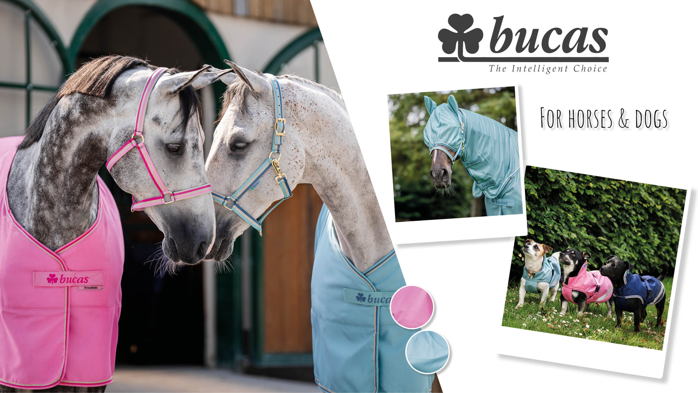 ✅ Bucas: Stelle dir das ultimative Set zusammen, mit neuer Fliegendecke und Freedom Turnout samt passendem Halfter, Fliegenmaske und sogar Hundedecke!