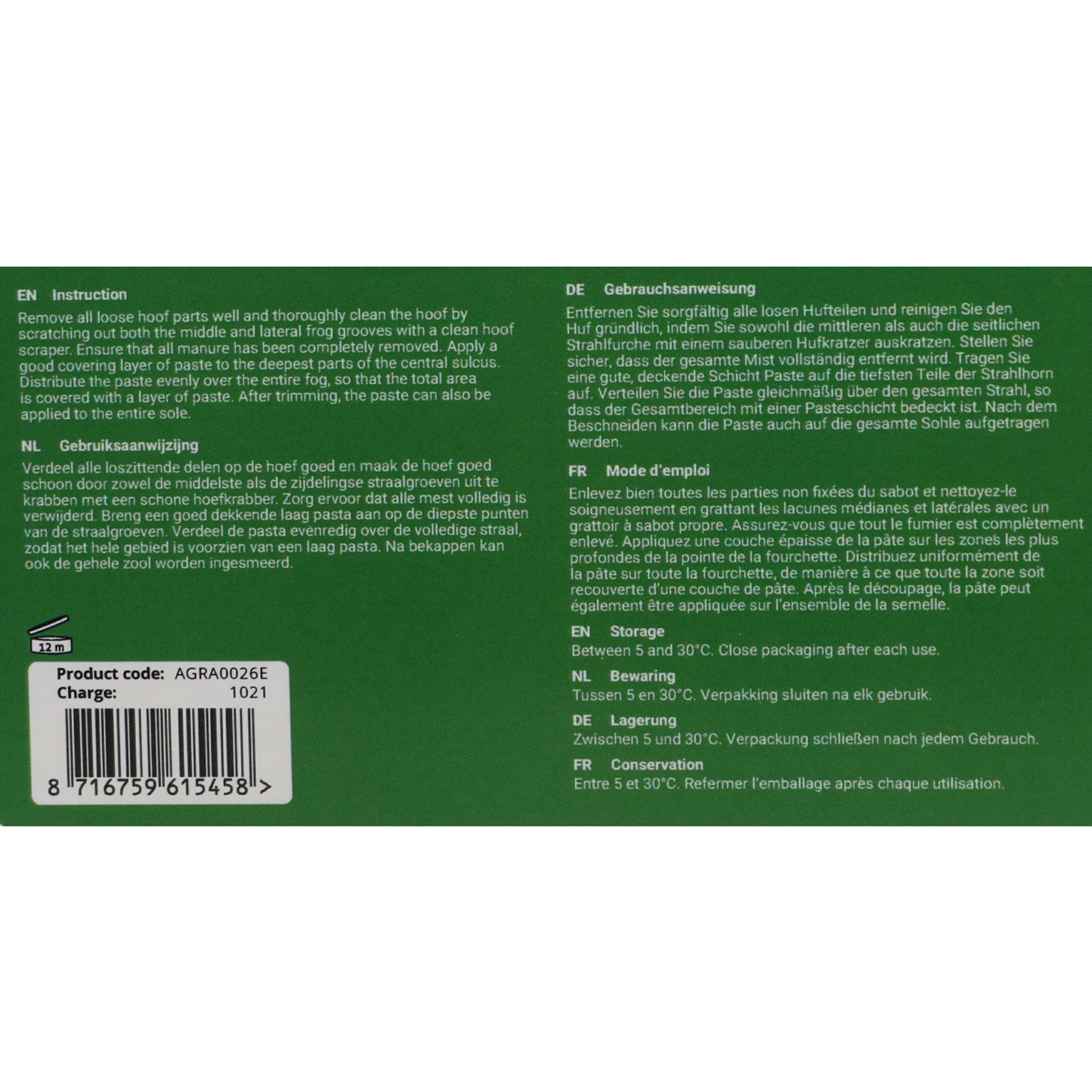 Die Paste ist reich an Zinkoxid und hat eine extrem trocknende Wirkung. Perfekt geeignet, um Hufen gegen Urin und Kot zu schützen.