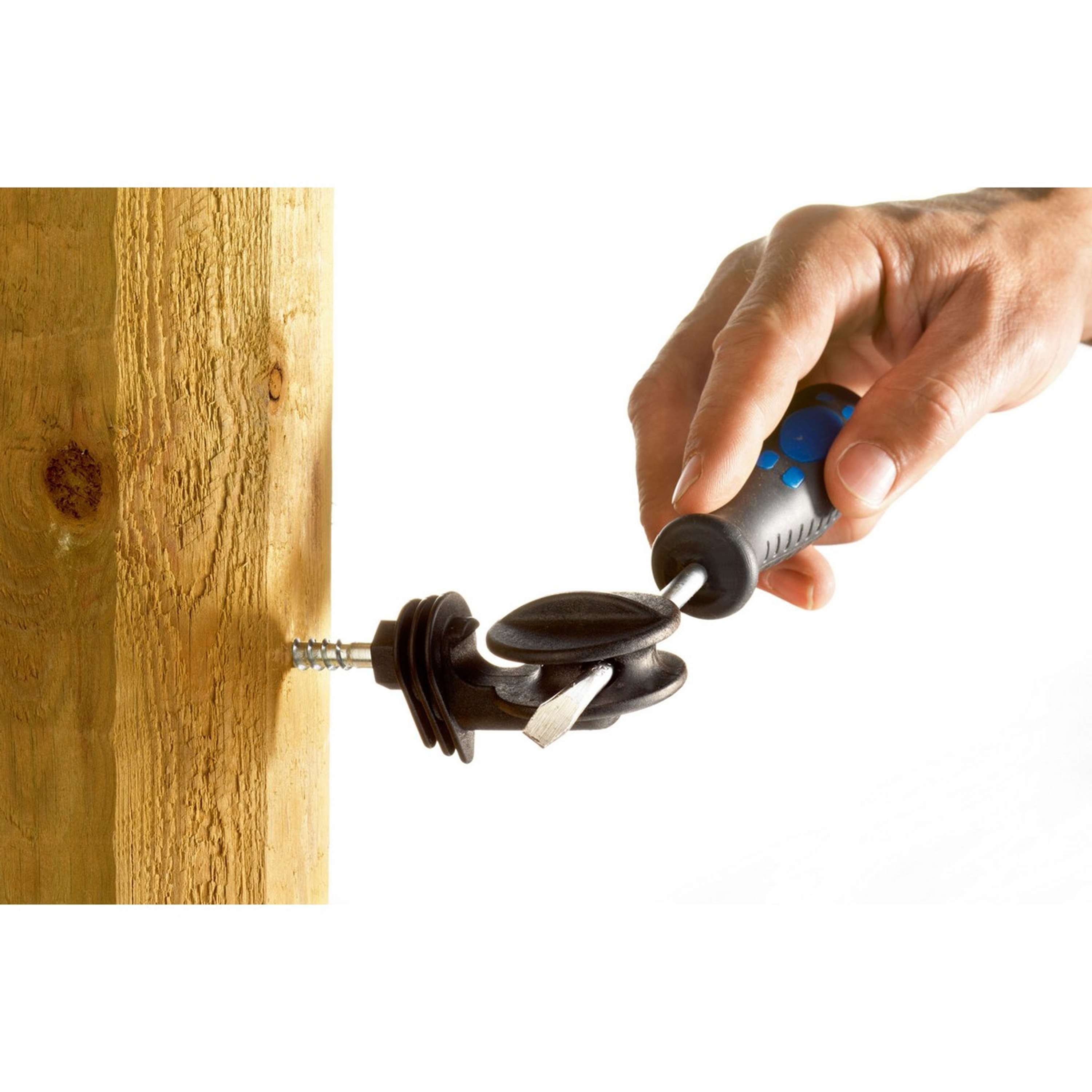 Der Isolator besteht aus Polyamid-Kunststoff, der für hohe Zugkräfte ausgelegt ist. Das bedeutet, dass er auch bei starker Beanspruchung nicht nachgibt und immer fest sitzt.
