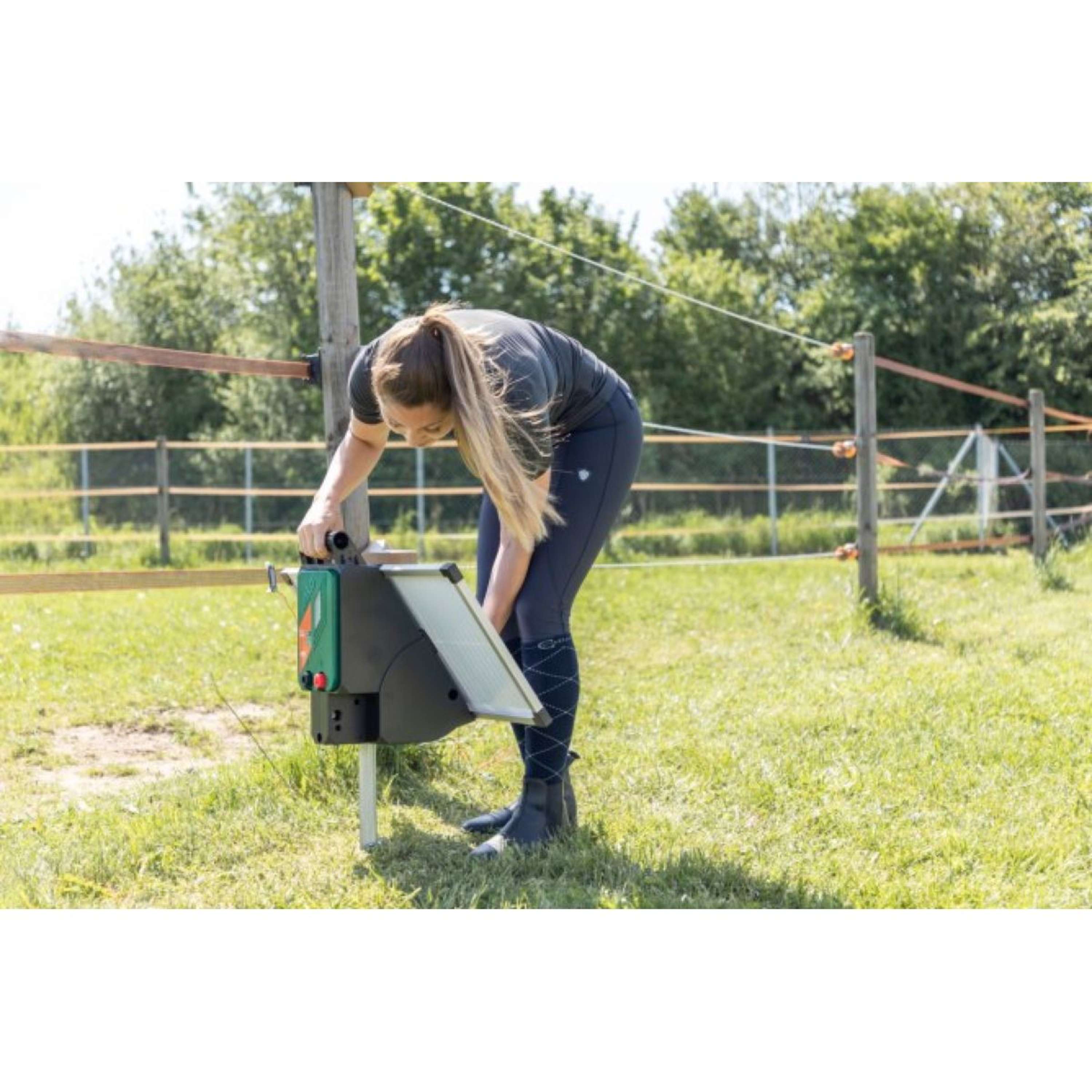 Das Sun Power S 3000 ist ideal für Pferde- und Rinderkoppeln sowie für Ziegen, Schafe und Schutz vor Wölfen. Es ist auf dauerhaften, wartungsfreien Betrieb während der gesamten Hauptweidesaison optimiert. Dank des robusten, wetterfesten und wasserdichten Gehäuses mit praktischem Tragegriff kannst du es bei jedem Wetter nutzen.