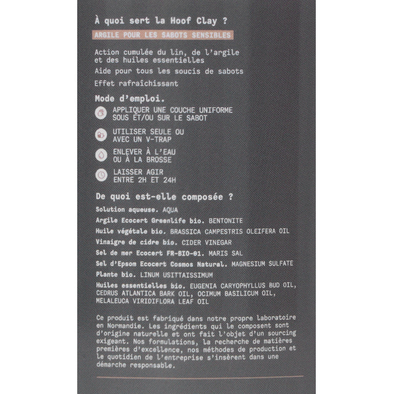 Bentonit-Ton, eine wässrige Lösung, Bio-Flachspulver, verschiedene Bio-Öle wie Rizinusöl und Apfelessig, Natriumchlorid, Magnesiumchlorid und ätherische Bio-Öle sorgen für die perfekte Mischung.