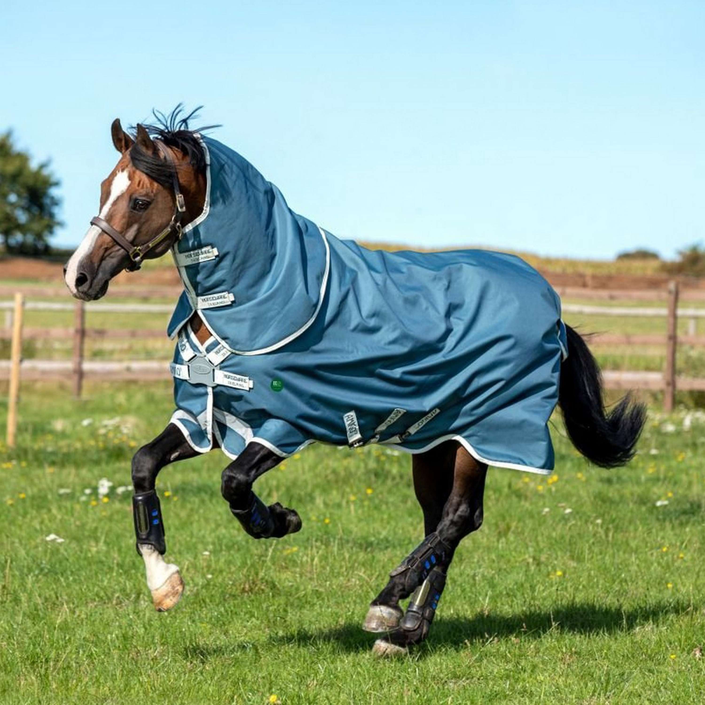 Nachhaltiges, glanzverstärkendes rPET-Futter, das Reibung verhindert und ein gesundes Fell fördert. Der patentierte Disc Front Closure nimmt den Druck ab und verhindert ein Reiben der Schulter. Ermöglicht Ihrem Pferd ein bequemes Grasen.