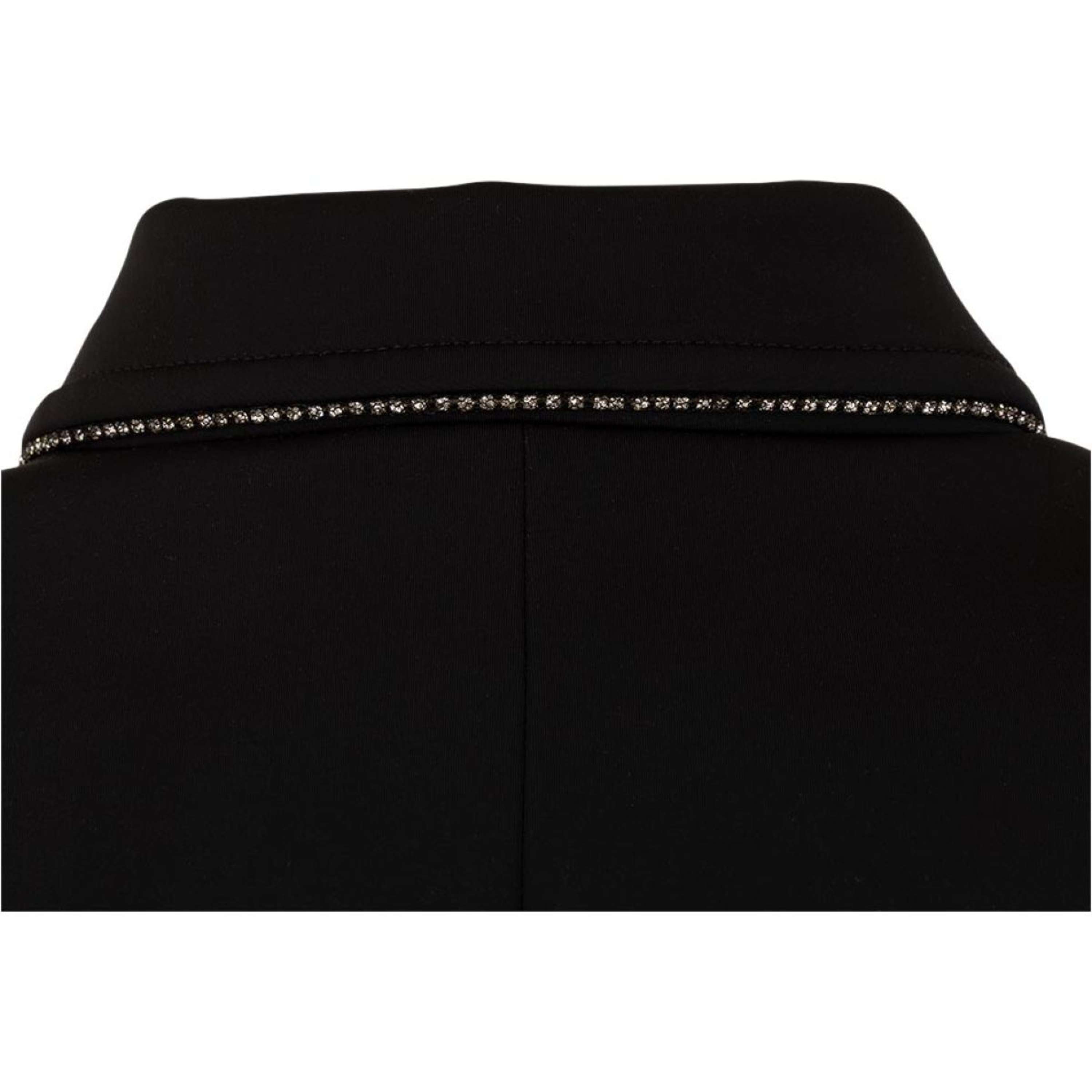 Diese dehnbare Jacke hat eine körpernahe Passform und stilvolle Klappen mit Strasssteinen, die durch Klettverschlüsse abnehmbar sind. Auch der Kragen und die Rückseite sind luxuriös mit Strasssteinen besetzt. Der doppelte Druckknopfverschluss trägt das ANKY®-Logo und die Ärmelknöpfe ebenfalls.