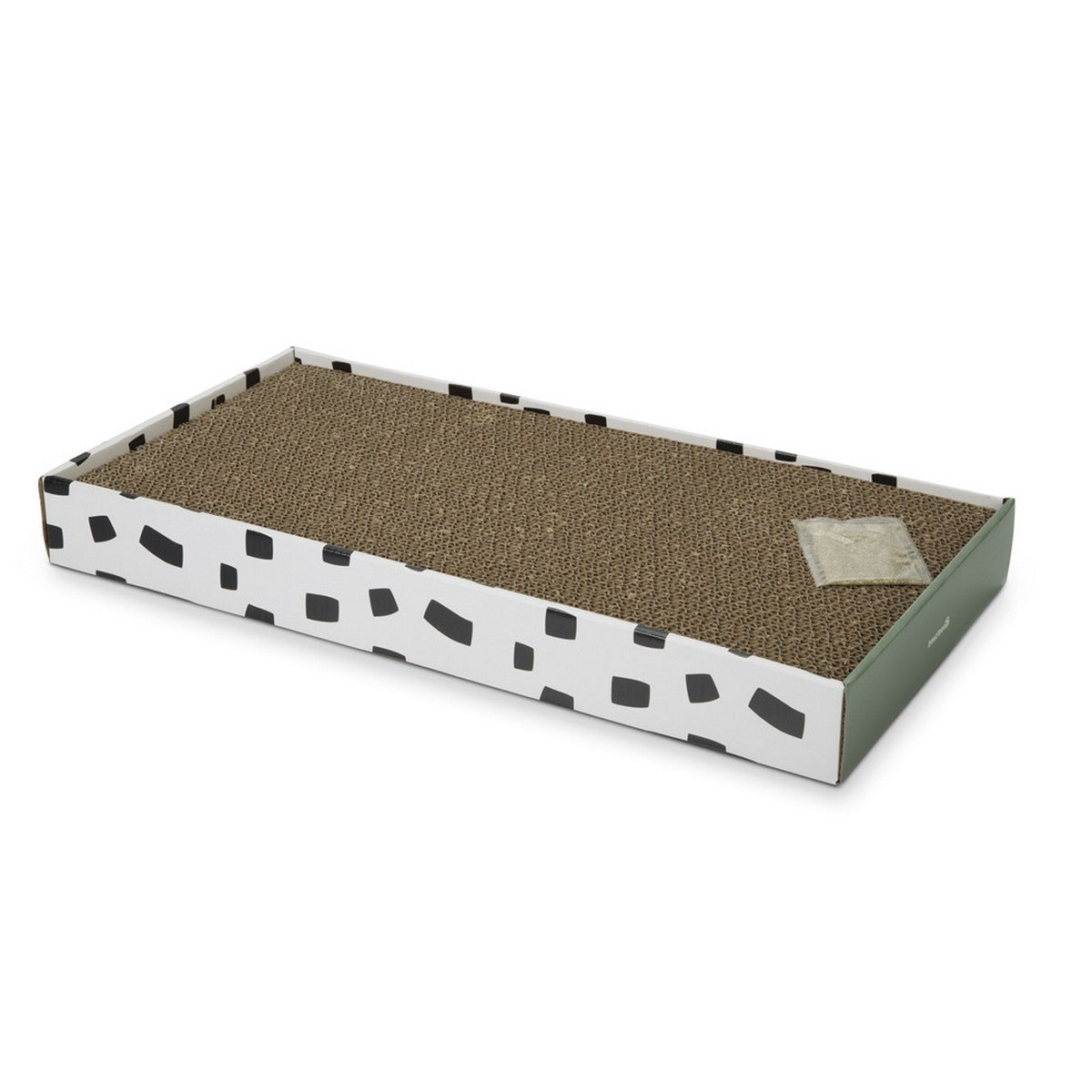 Hergestellt aus Pappe ist die Kratzplanke leicht zu bewegen und braucht nicht viel Platz. Sie passt einfach überall hin - ob ins Wohnzimmer oder in den Flur.