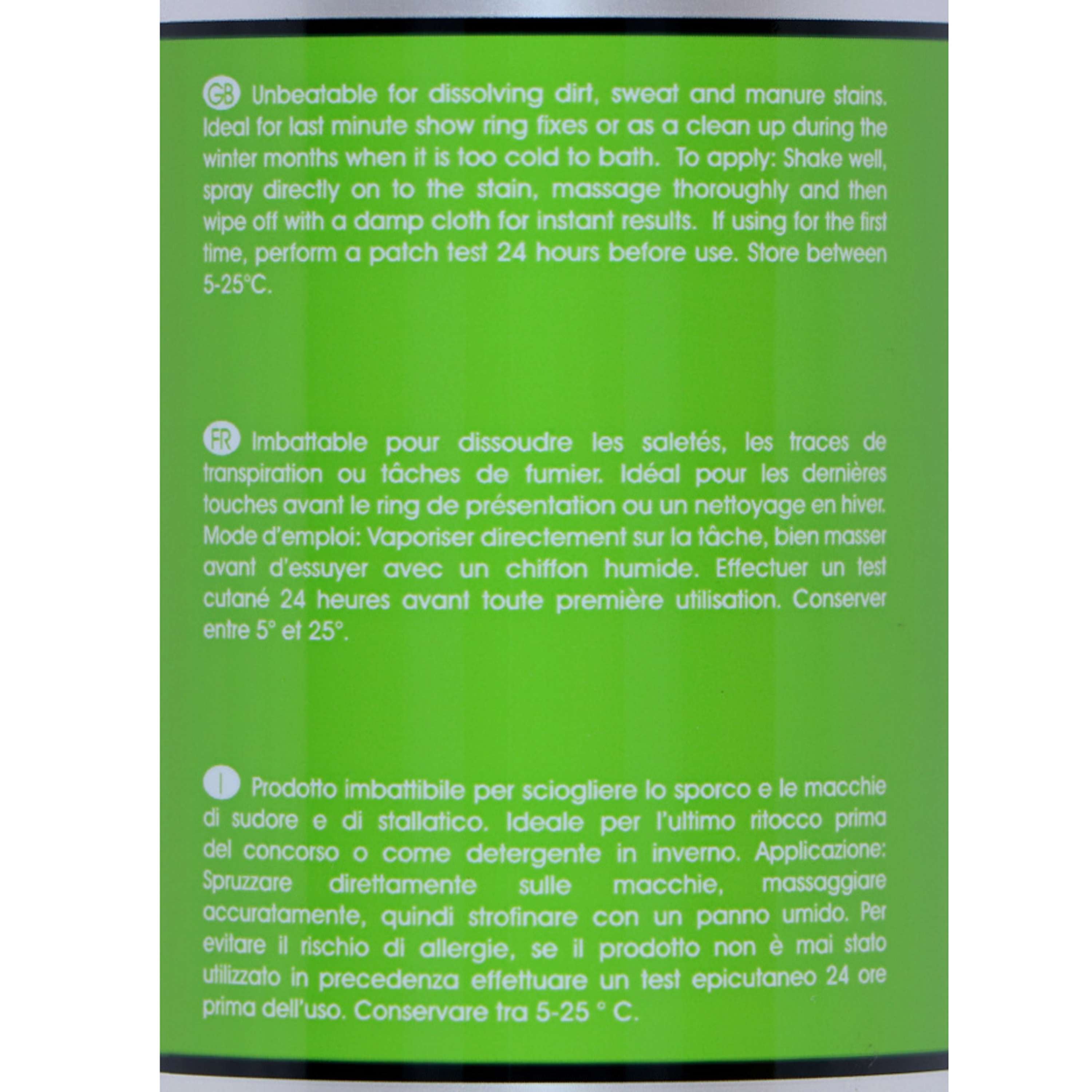 Keine Lust auf Schmutzflecken auf deinem Pferd? Dann ist der Carr & Day & Martin Fleckenspray Stain Master Equimist genau das Richtige für dich. Einfach aufsprühen, mit einem feuchten Schwamm einmassieren und trocken reiben – fertig! Super praktisch für eine schnelle Auffrischung vor Schauen und Veranstaltungen. Wenn es mal zu kalt ist fürs komplette Waschen, funktioniert dieser Spray auch perfekt als Trockenshampoo.