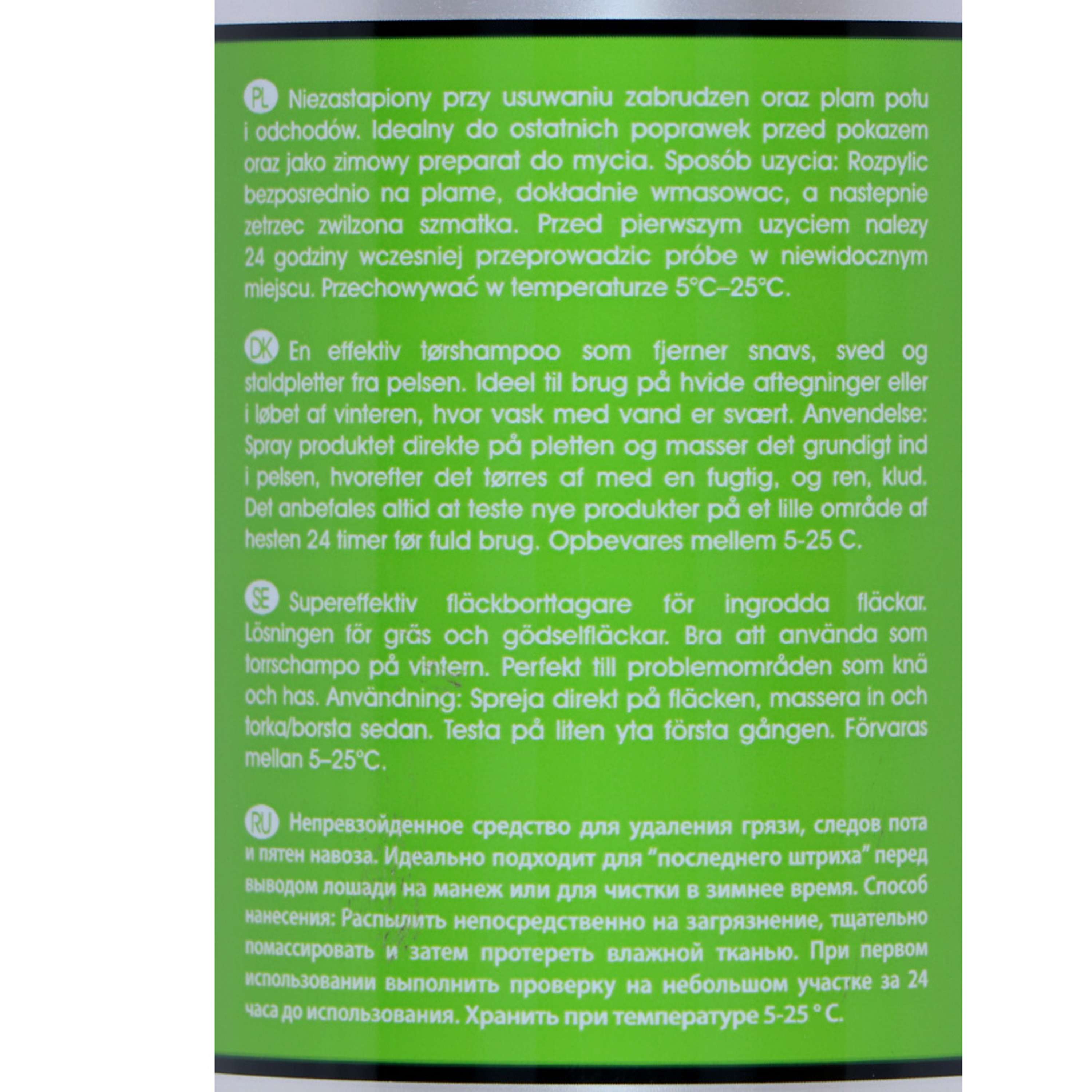 Kein Abspülen nötig! Einfach aufsprühen, einmassieren und trocken reiben. So schnell und einfach. Perfekt für die kalten Tage, wenn du dein Pferd nicht komplett waschen möchtest.