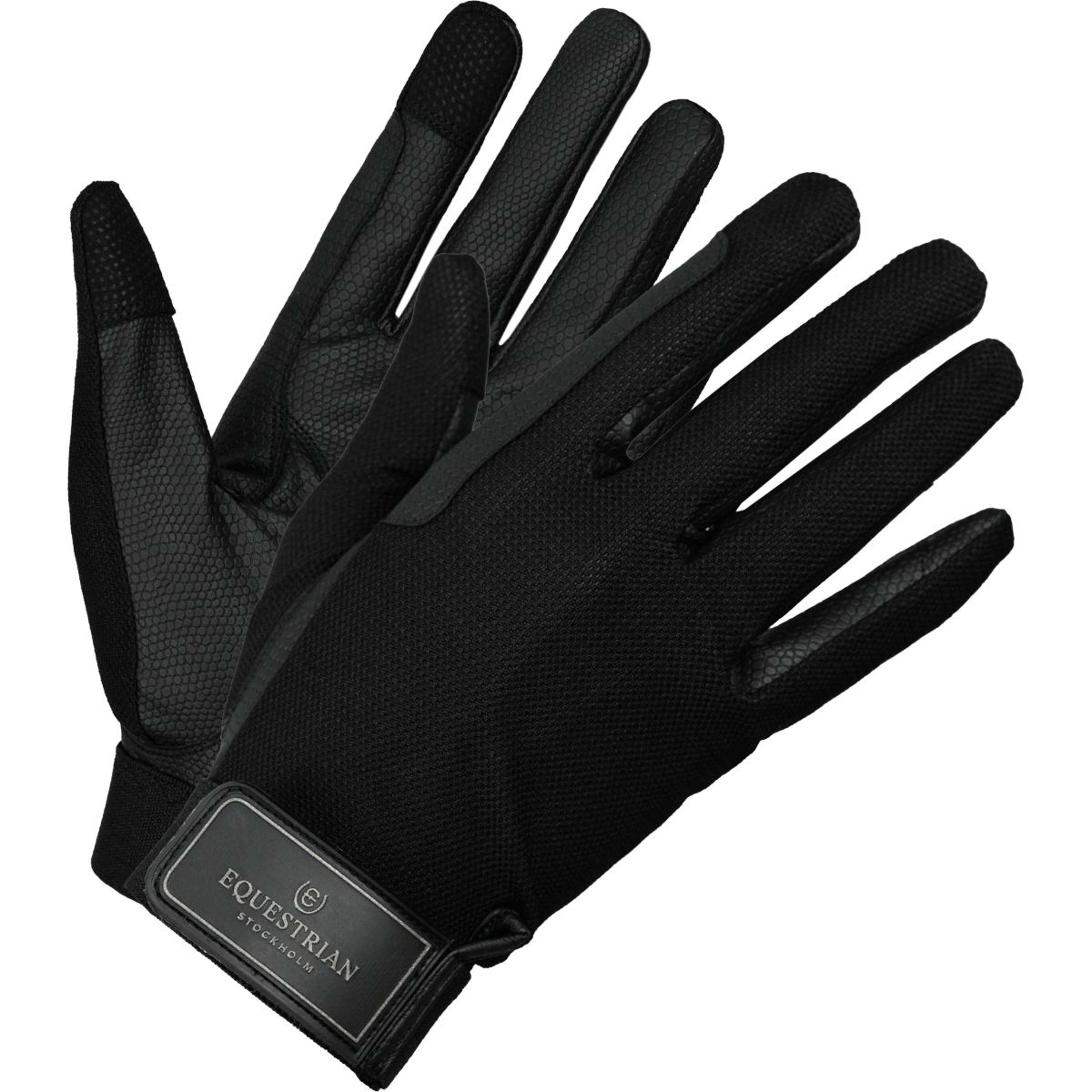 Diese Handschuhe sind in klassischem Schwarz erhältlich und mit einem silberfarbenen Equestrian Stockholm-Logo verziert. Einfach schick und elegant.