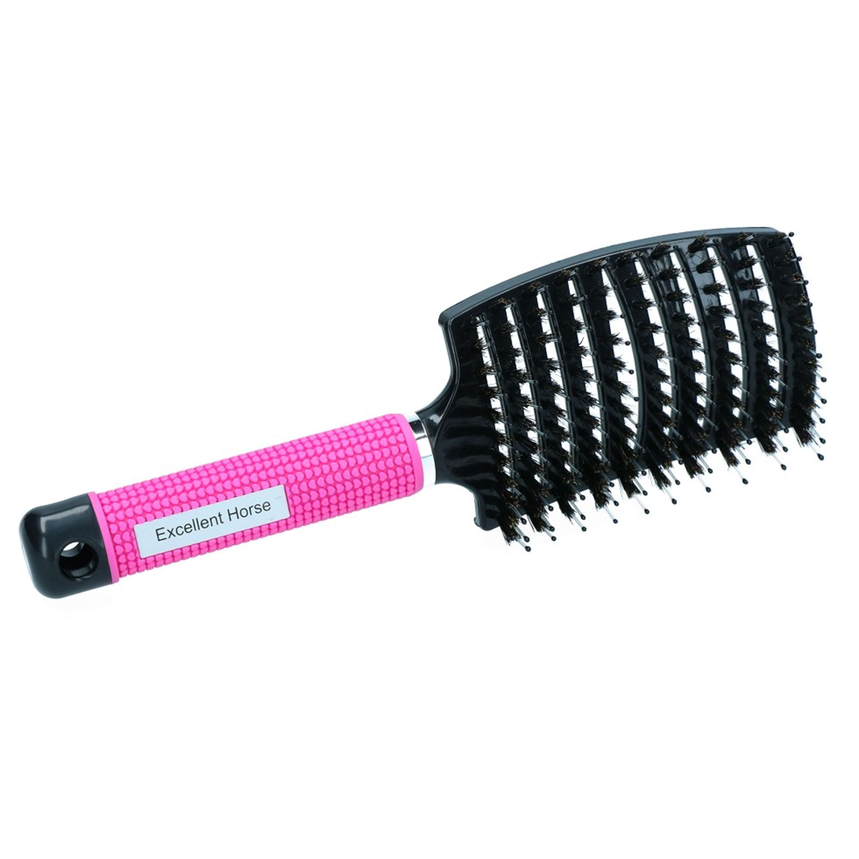 Mit der Excellent Mähnen & Schweifbürste Horse Supreme entfernst du problemlos alle Knoten. Durch die flexiblen Stifte mit weichen Borsten wird das Haar geschont und Spliss verhindert. Dein Pferd wird es lieben!