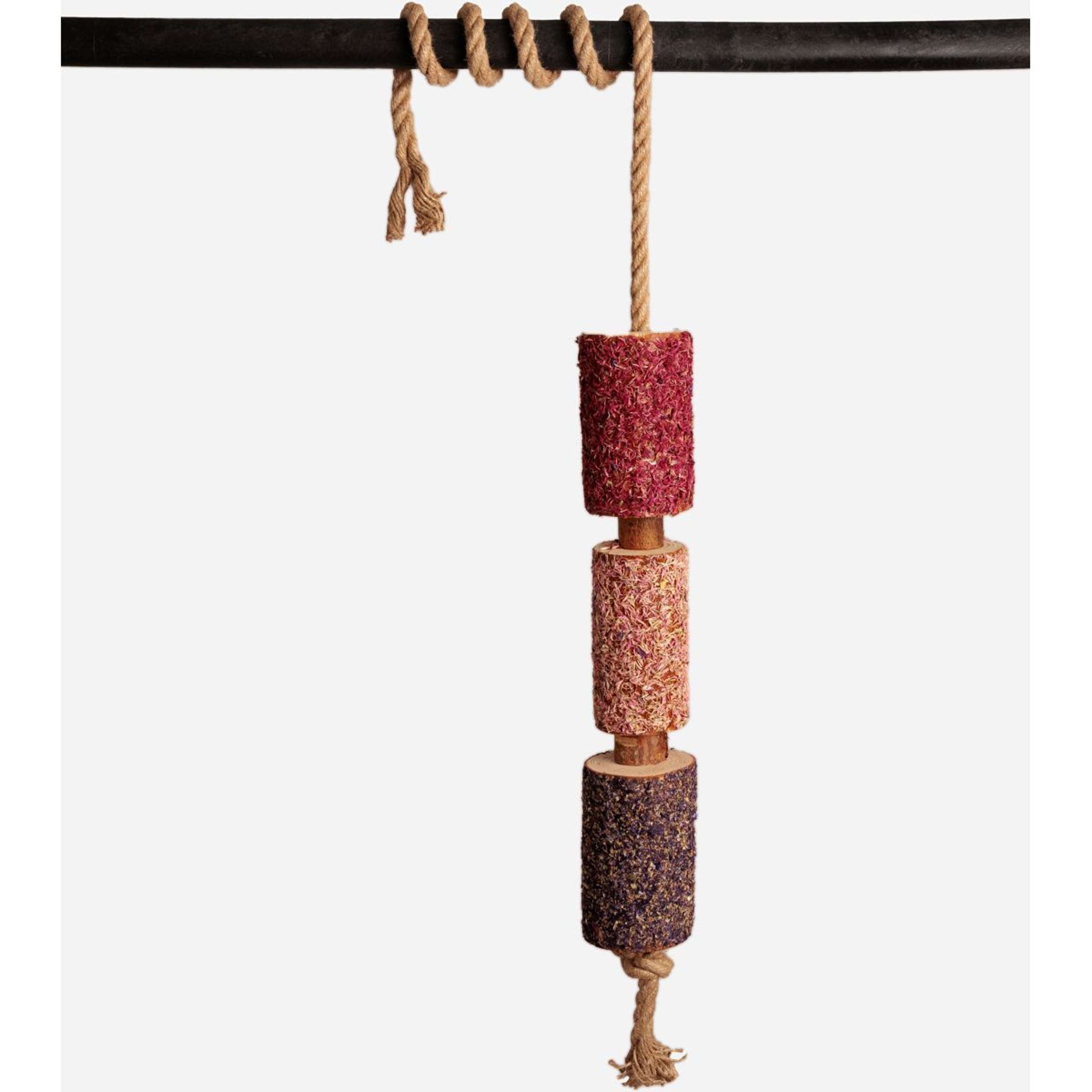 Jedes Stück Holz wird von Hand aus dem Wald ausgewählt und in seinem natürlichen Zustand belassen - ungetrocknet und unbehandelt - um die authentischen Gerüche und Texturen zu erhalten, die Pferde instinktiv reagieren Die Freedom-Version besteht aus einer einzigartigen Kräutermischung, wobei jede Farbe einen bestimmten pflanzlichen Nutzen darstellt: