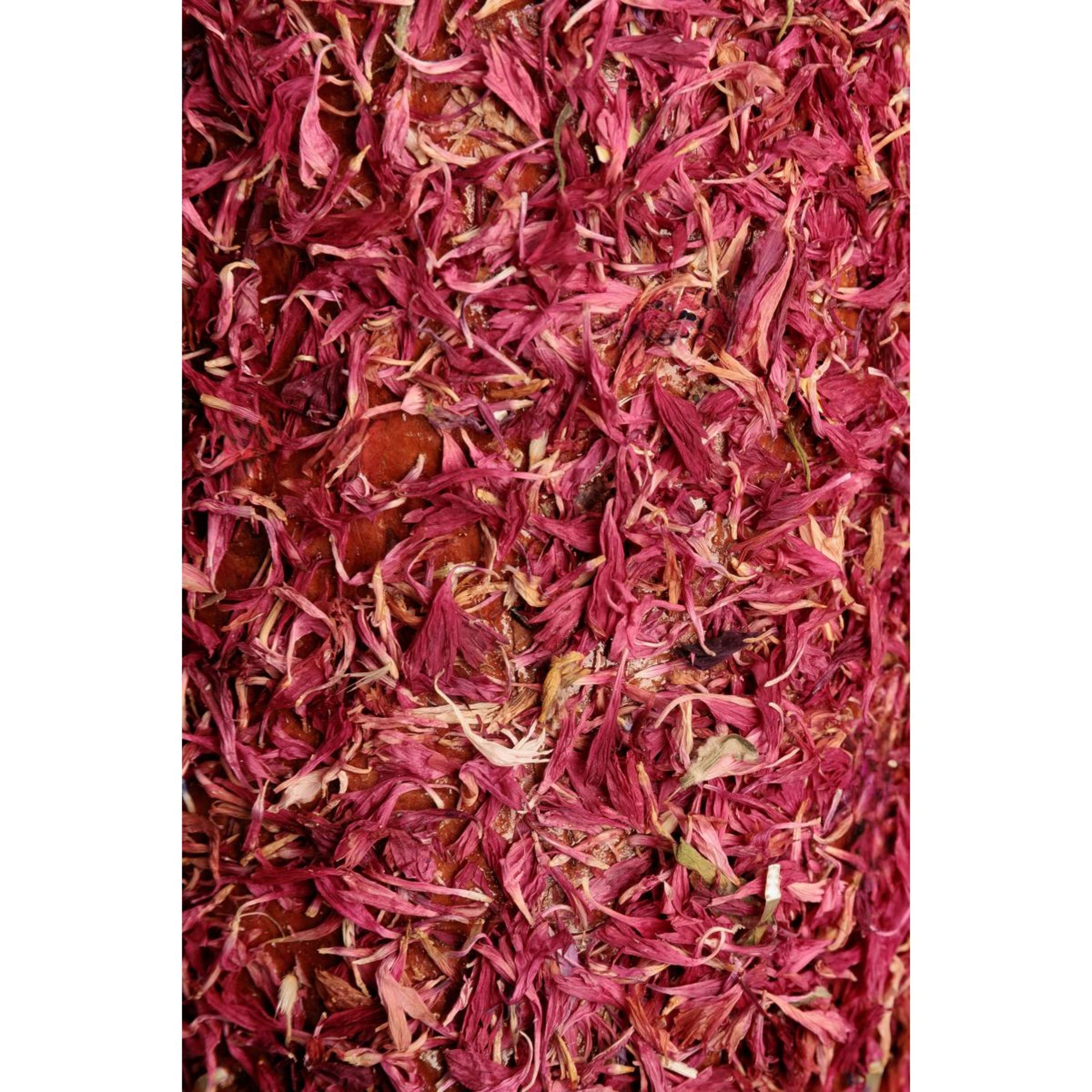 – Die Rot- und Rosatöne enthalten wilde Rosenblätter, eine natürliche Quelle für Antioxidantien – insbesondere Vitamin C – mit verdauungsfördernden und entzündungshemmenden Eigenschaften und einem natürlich ansprechenden Aroma.