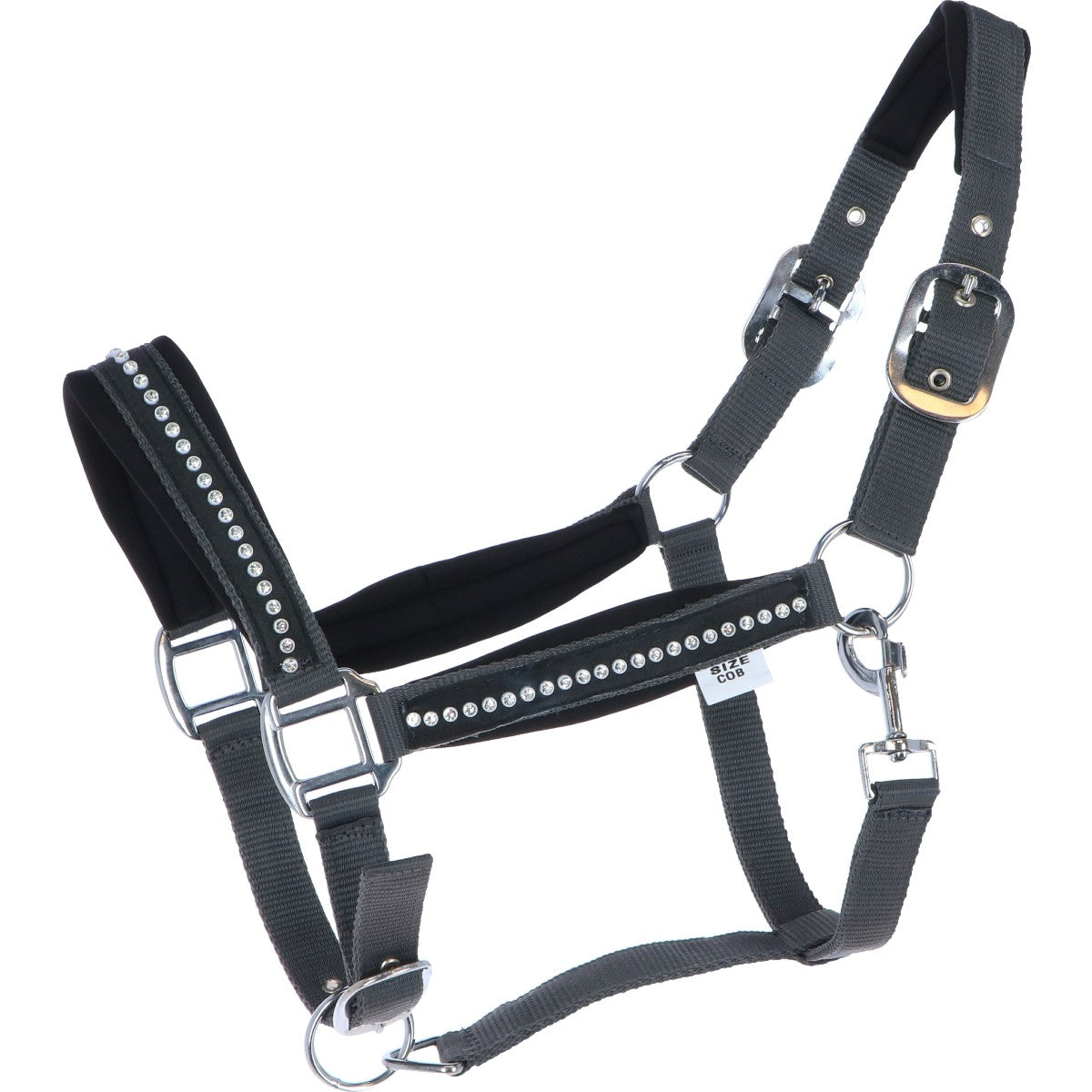 Dieses Halfter hält was aus, denn es ist mit robusten, silberfarbenen Schnallen versehen. Egal ob im Stall oder auf der Weide, dein Pferd ist immer gut ausgestattet.
