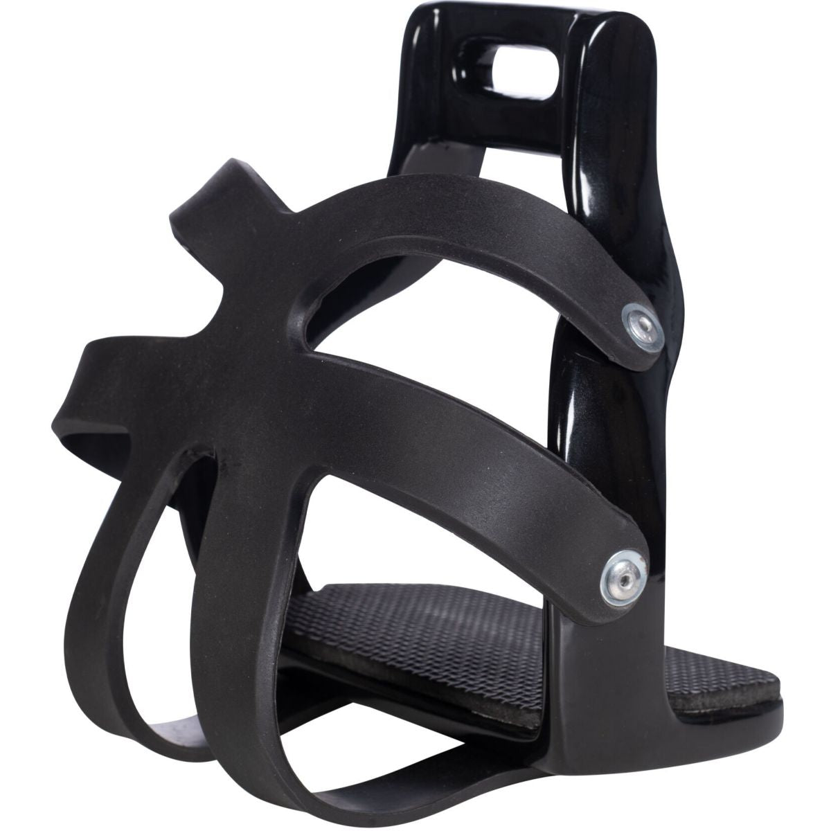 Das Trittfläche besteht aus rutschfestem Material, unterlegt mit flexiblem und elastischem Schaum. Diese Kombination verhindert das Abrutschen und sorgt für eine stabile Position deiner Füße in den Steigbügeln. Die Fußkörbe verhindern das Herabrutschen und Verfangen, sodass du dich voll und ganz auf deine Reitkunst konzentrieren kannst.
