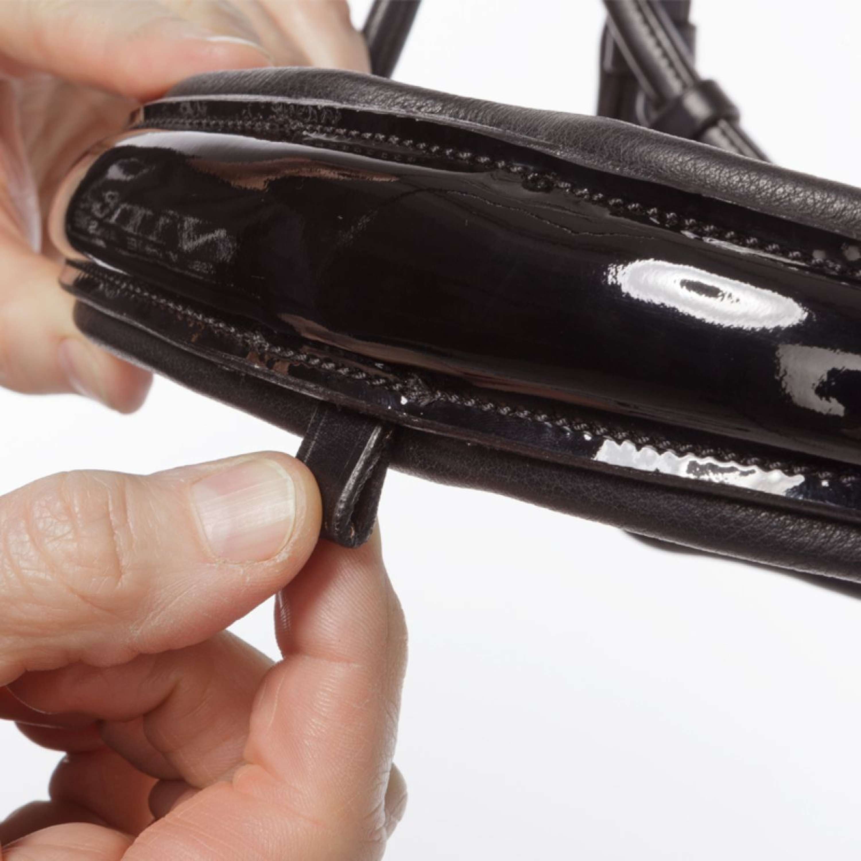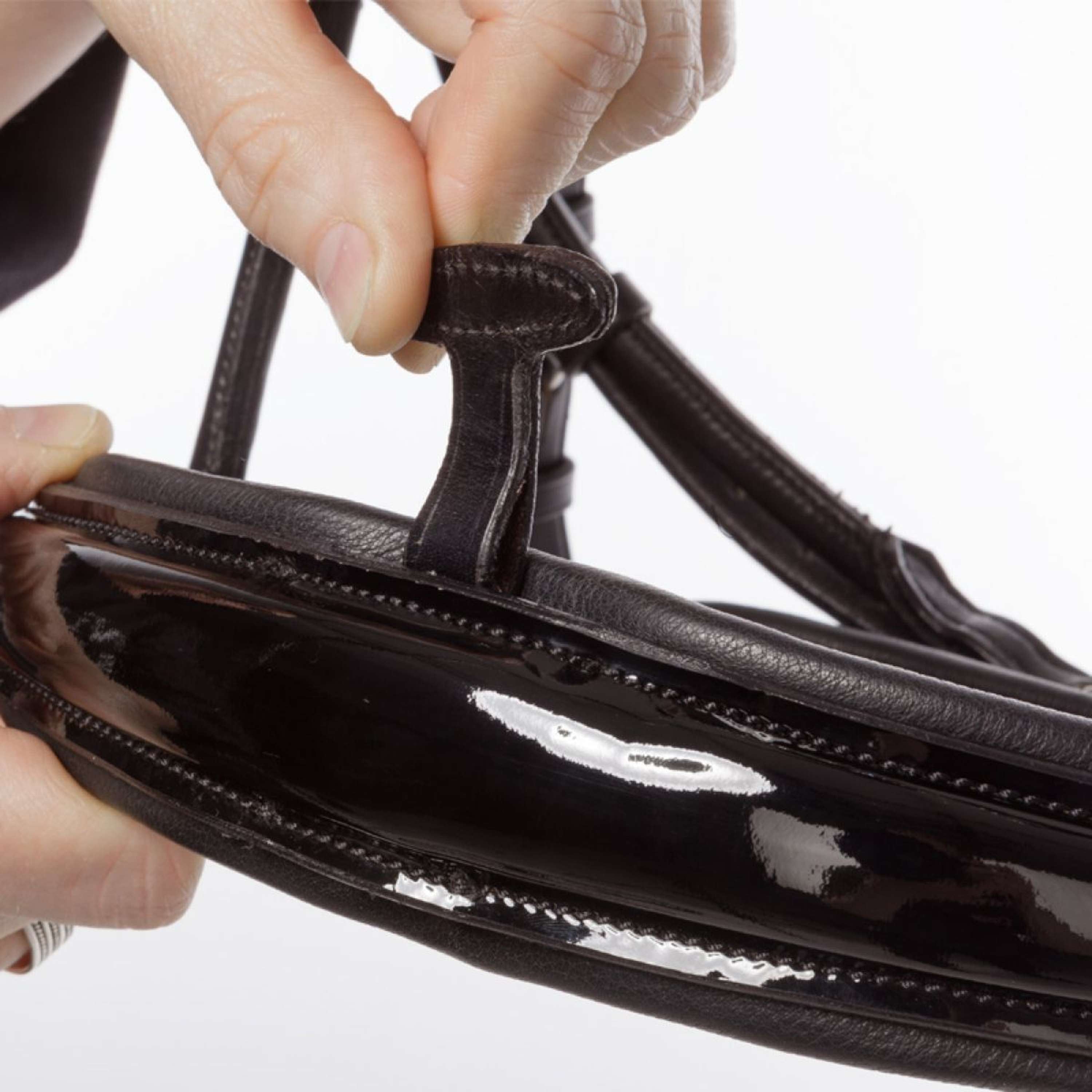 - Breiter Nasenriemen mit Lack, konisch zulaufend