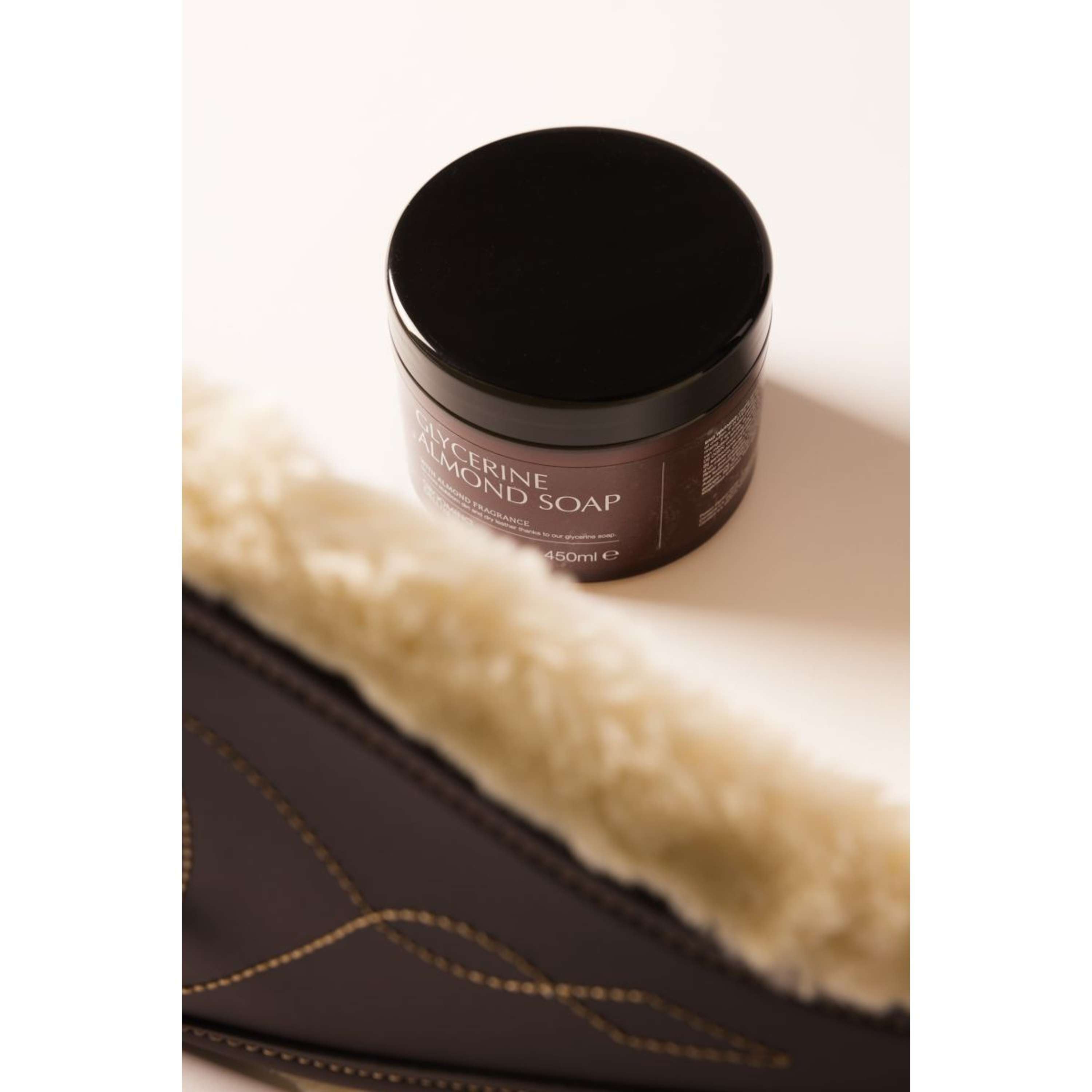 Die Kentucky Horsewear Seife Glycerine Almond entfernt zuverlässig Schmutz und Dreck von deinem Sattelzeug. Sie ist einfach anzuwenden und sorgt dafür, dass das Leder sauber und gepflegt bleibt.