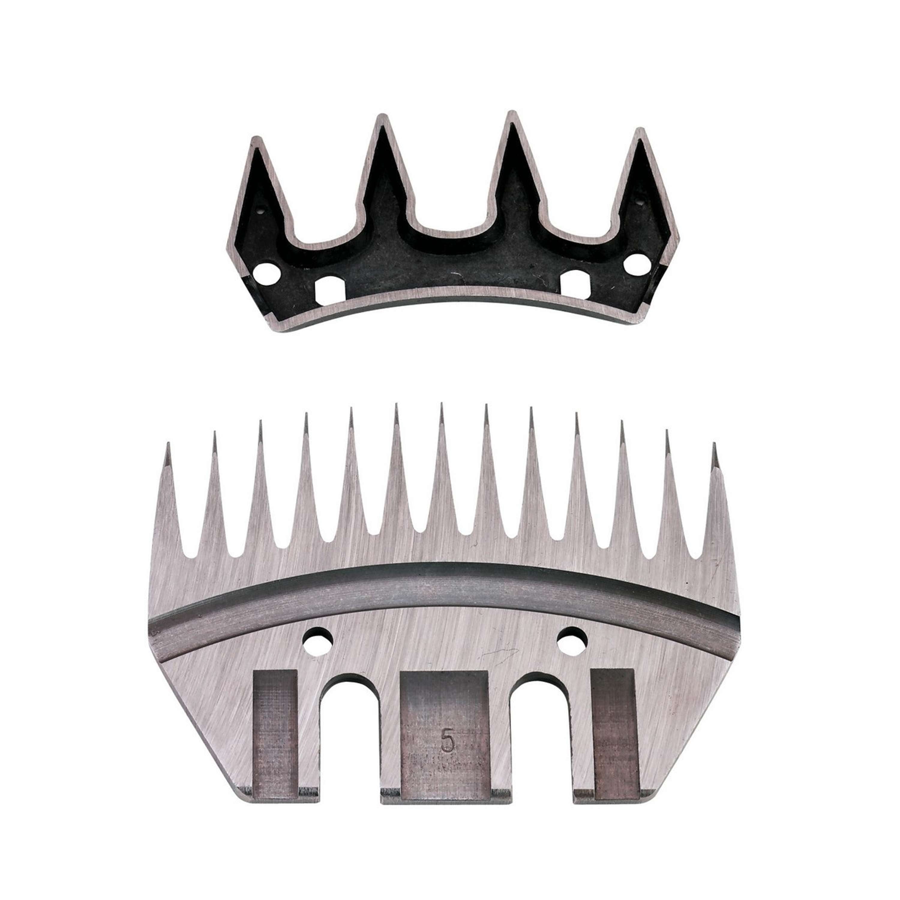 Das Kerbl Schermesser Set beinhaltet mehrere Kämme, die jeweils für spezielle Schurarten angepasst sind. Der A-4,5 Standardkamm (Art. 18140) ist ideal für normale Schurarbeiten. Wenn es mal schneller gehen muss, ist der 594 Kamm (Art. 18143) für geübte Scherer genau richtig. Für präzise Arbeiten bei sauberen Tieren empfiehlt sich der 393 Kamm (Art. 18144). Der 793 Feinwollkamm (Art. 18146) ist besonders für Merinoschafe geeignet.