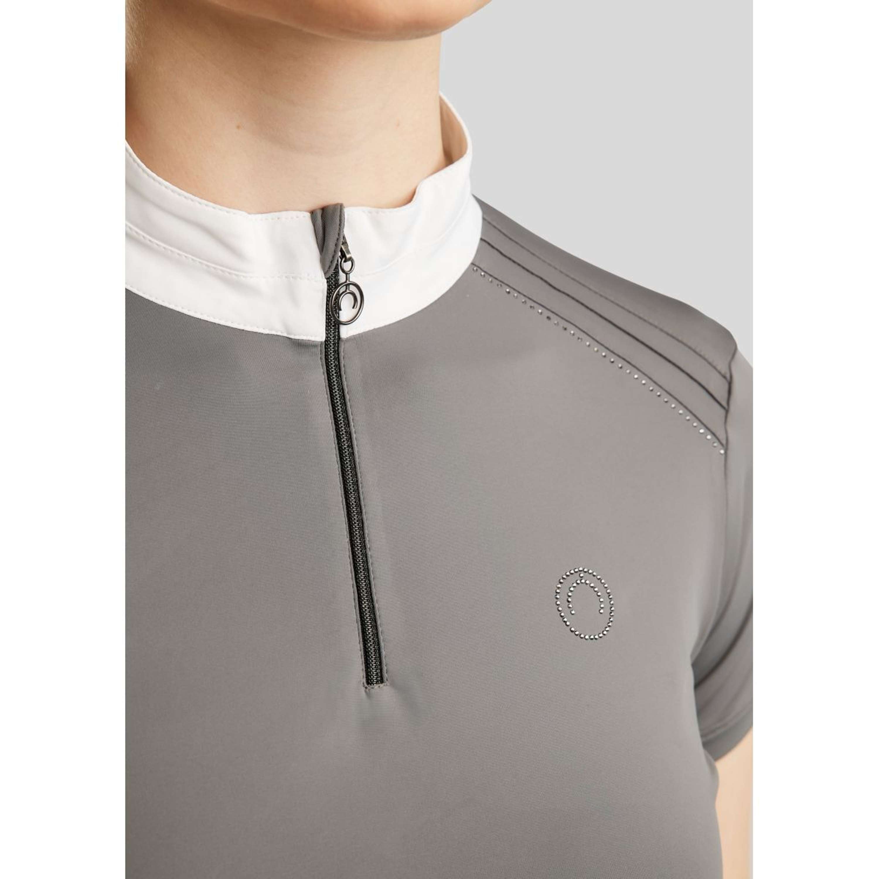 Montar Turniershirt MoPearl Pintucks Gun Metal Crystals Grau