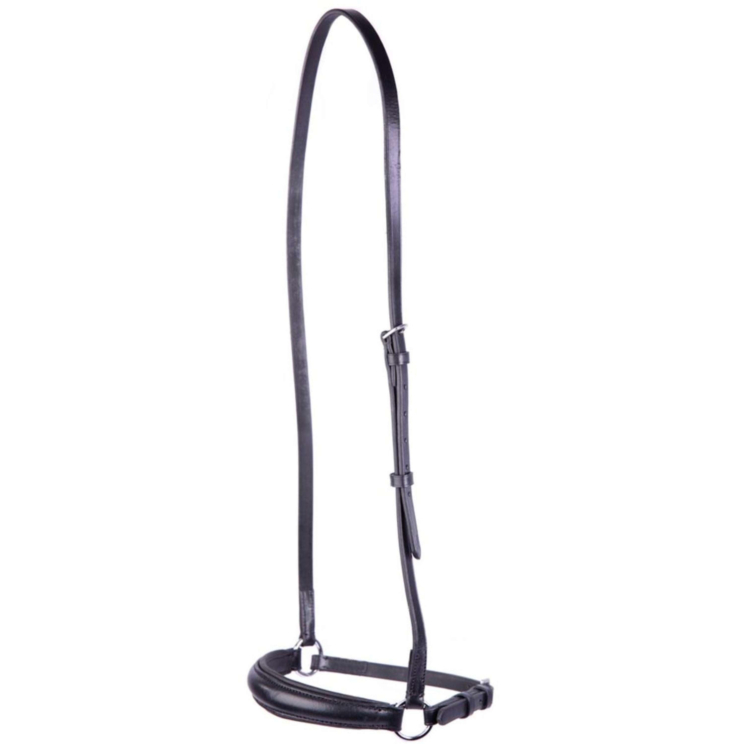 Die Backenstücke sind mit robusten Edelstahlschnallen ausgestattet, die für eine sichere Befestigung sorgen. Ebenso befinden sich Edelstahlringe an den Seiten des Nasenriemens, die für zusätzliche Stabilität und Haltbarkeit sorgen.