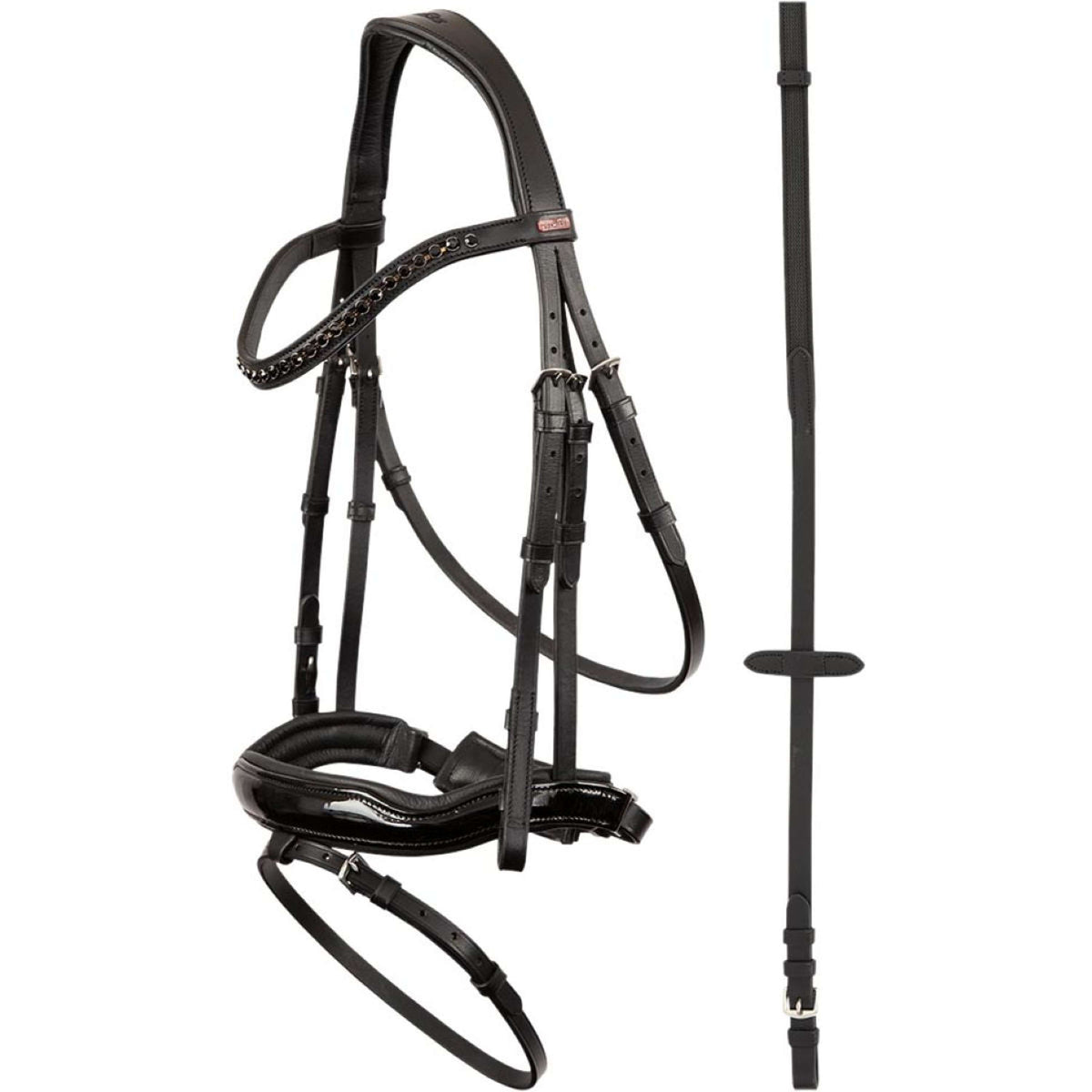 - Mit Lackleder veredelter Nasenriemen