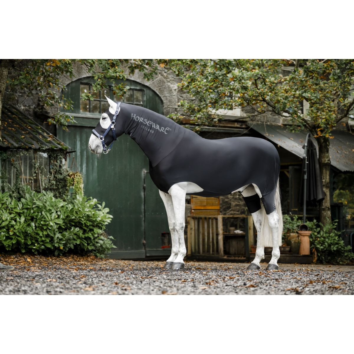 Konturierte Passform mit vollständiger Körperabdeckung einschließlich Gesicht, Hals, Bauch, Hinterhand und Kniebereich mit vorderen und hinteren Beinbögen für Komfort und Bewegungsfreiheit.