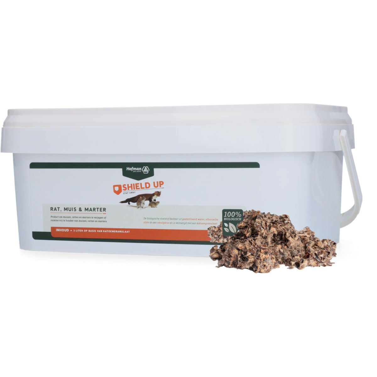 Das biologische Flüssigkeitsgemisch aus destilliertem Wasser, ätherischen Ölen und einem Emulgator wird einfach mit Baumwollgranulat vermischt. Es verströmt einen Geruch, den Nagetiere abstoßend finden. Entspann dich, denn es ist sicher für Mensch, Tier und Umgebung.