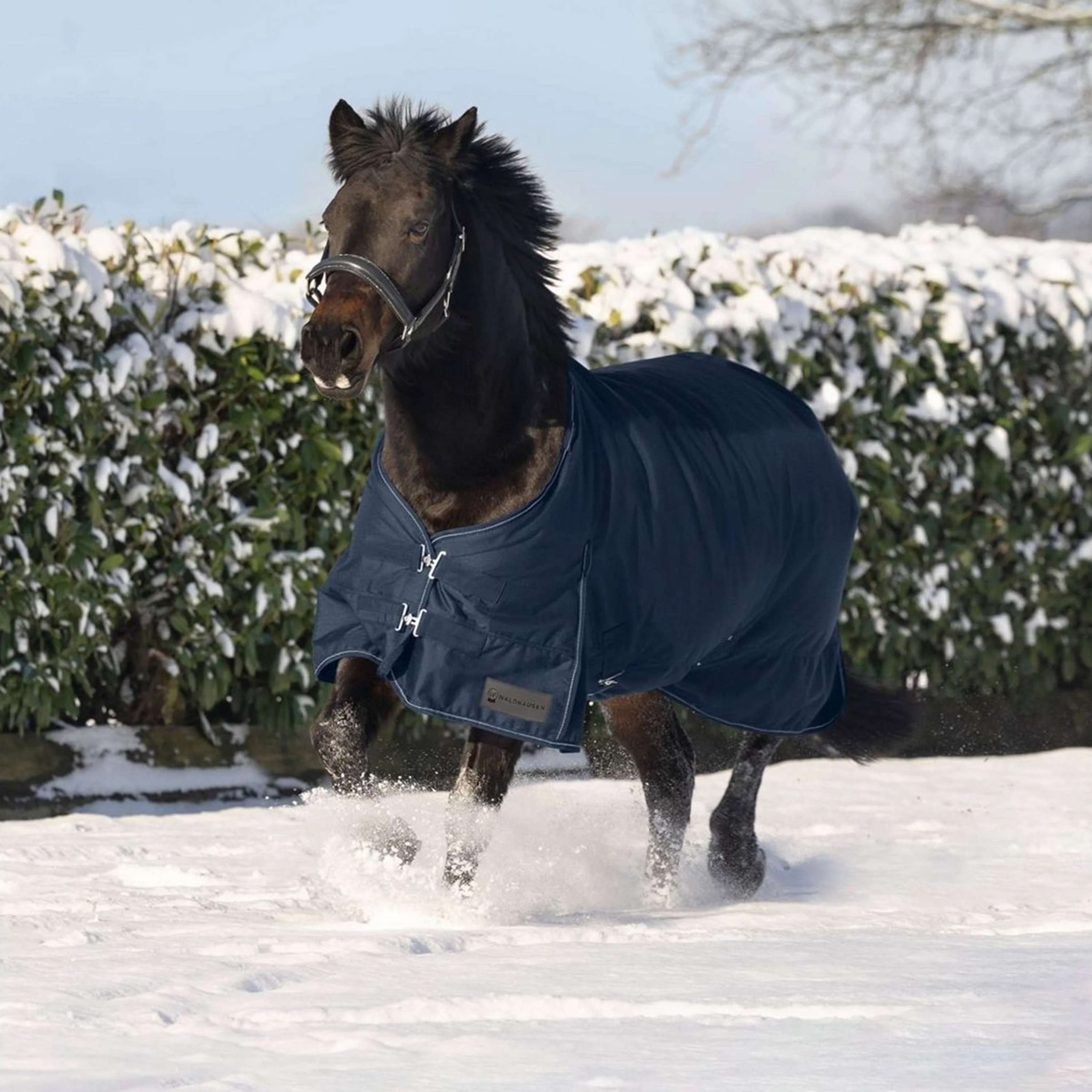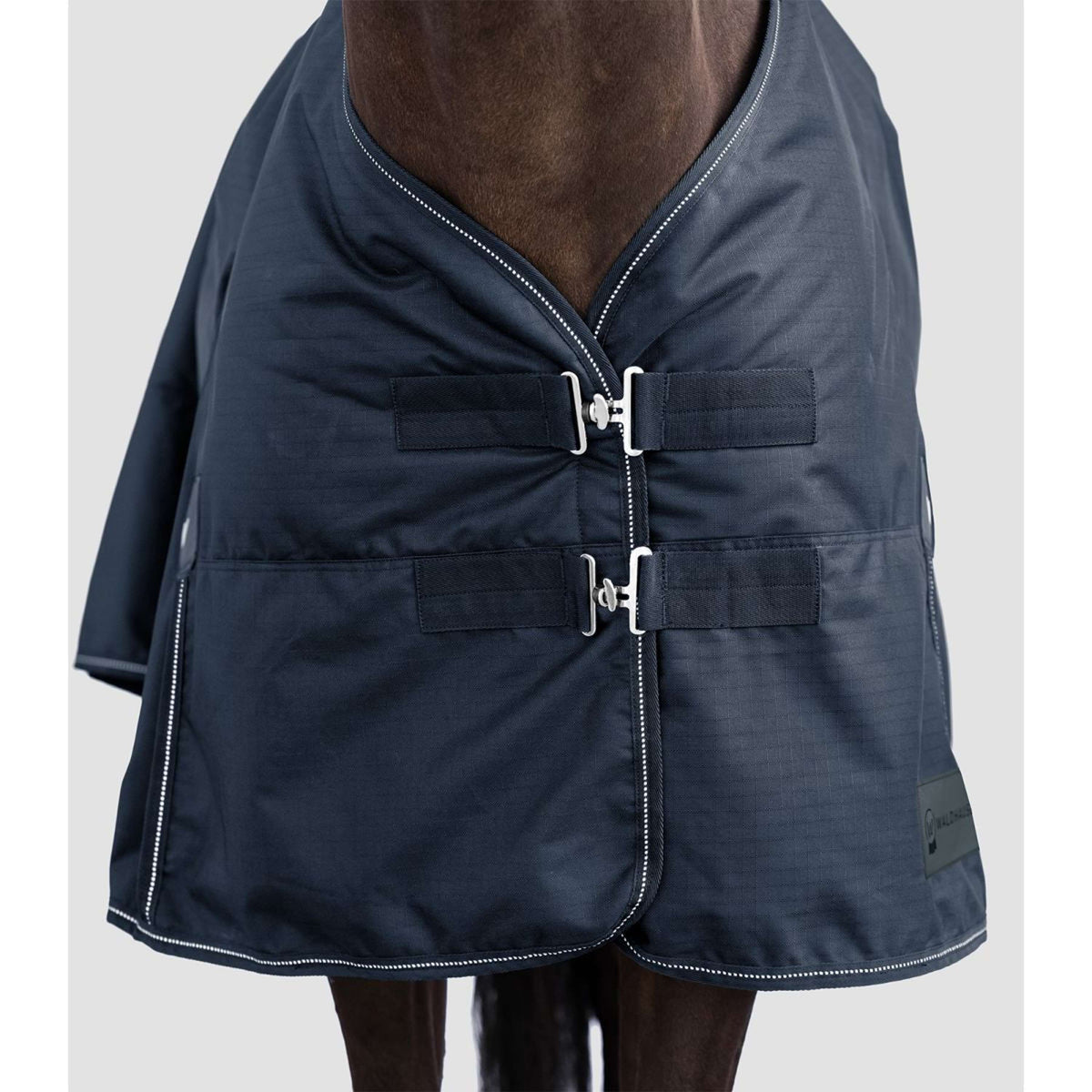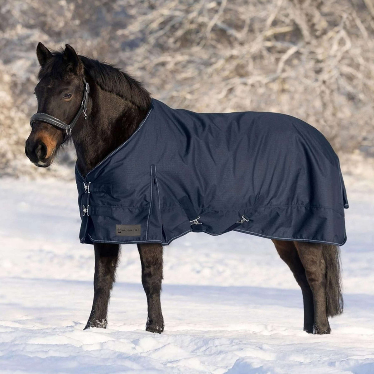 Die Waldhausen Outdoordecke Nordic 100 g in Nachtblau bietet deinem Pferd maximalen Komfort an kühlen Tagen. Mit den doppelten T-Frontverschlüssen sitzt die Decke immer perfekt.