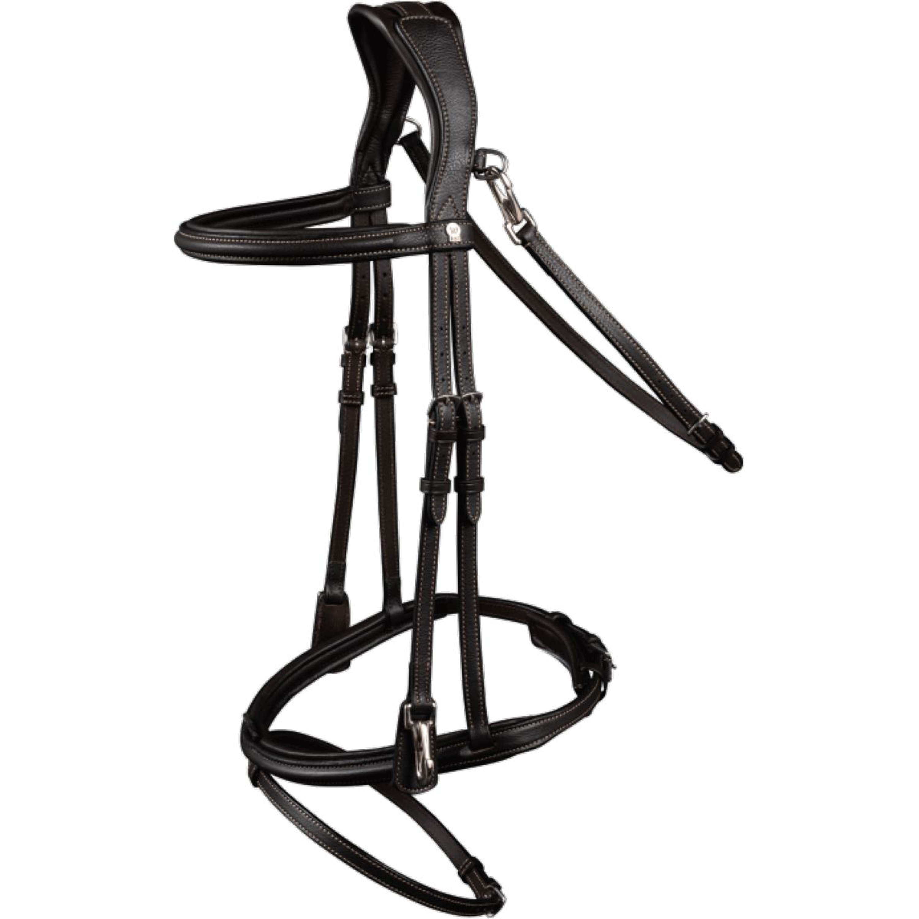 Die verstellbaren Backenstücke und Stirnriemen sorgen dafür, dass das Zaumzeug perfekt auf den Kopf deines Pferdes passt. Mit den Edelstahlschnallen kannst du alles schnell und einfach einstellen.